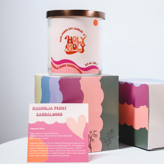 Magnolia Peony Sandalwood - Hand Poured Scented Soy Candle - Gift Box - 8.5oz